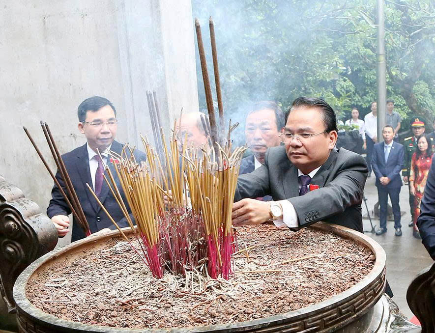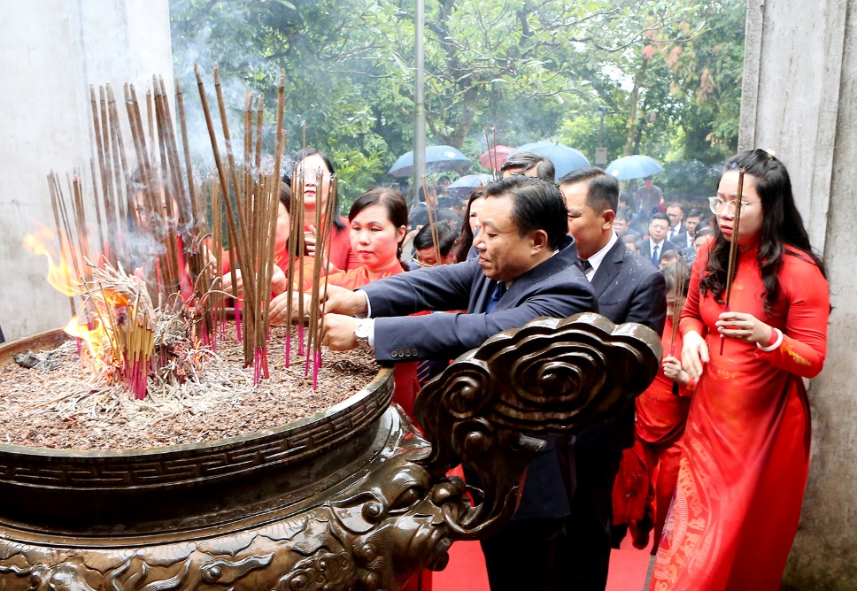 Các đồng chí lãnh đạo tỉnh dâng hương tưởng niệm các Vua Hùng tại Điện Kính Thiên