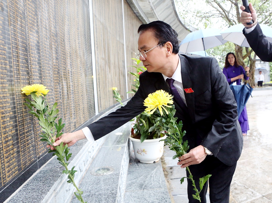Các đồng chí lãnh đạo tỉnh, các đồng chí Ủy viên Ban Thường vụ Tỉnh ủy dâng hoa tưởng niệm các Anh hùng liệt sĩ
